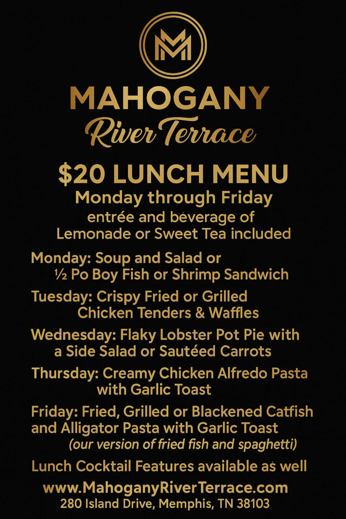 At 𝐌𝐚𝐡𝐨𝐠𝐚𝐧𝐲 River Terrace, we’re passionate about Southern cooking. From our tender fried chicken to our savory gumbo, each dish is crafted to bring you comfort and satisfaction.